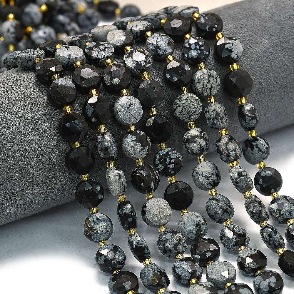 Природные снежинка обсидиан бисер нитей, граненый шестиугольный разрез, плоско-круглые, с бисером