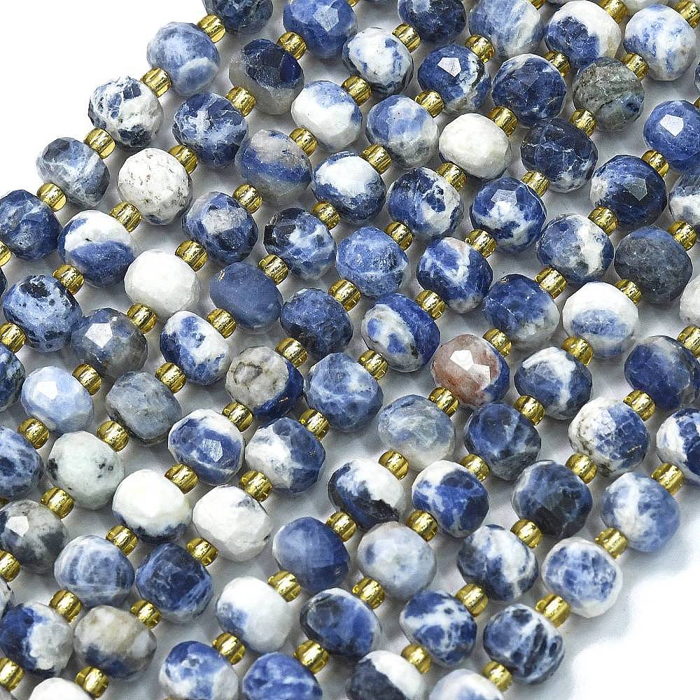 Природный содалит бисер нитей, с бисером, граненые, фонарь