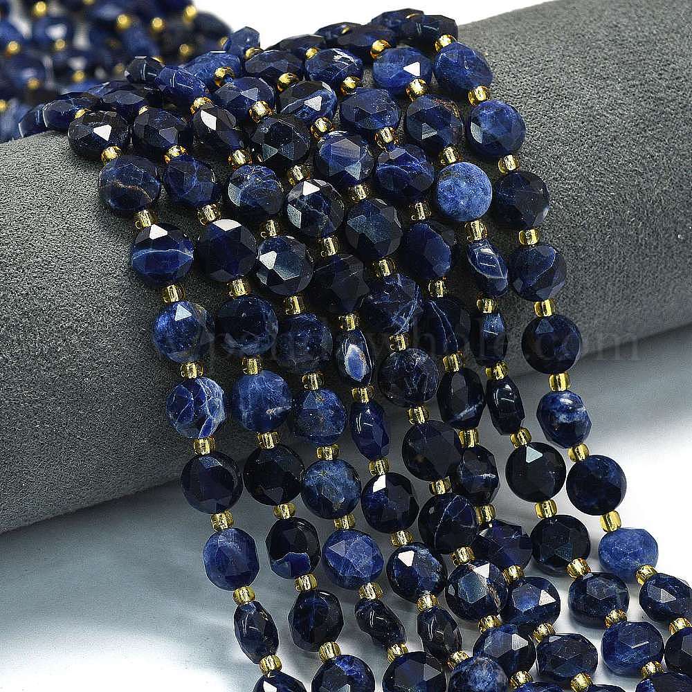 Природный содалит бисер нитей, граненый пятиугольный разрез, плоско-круглые, с бисером