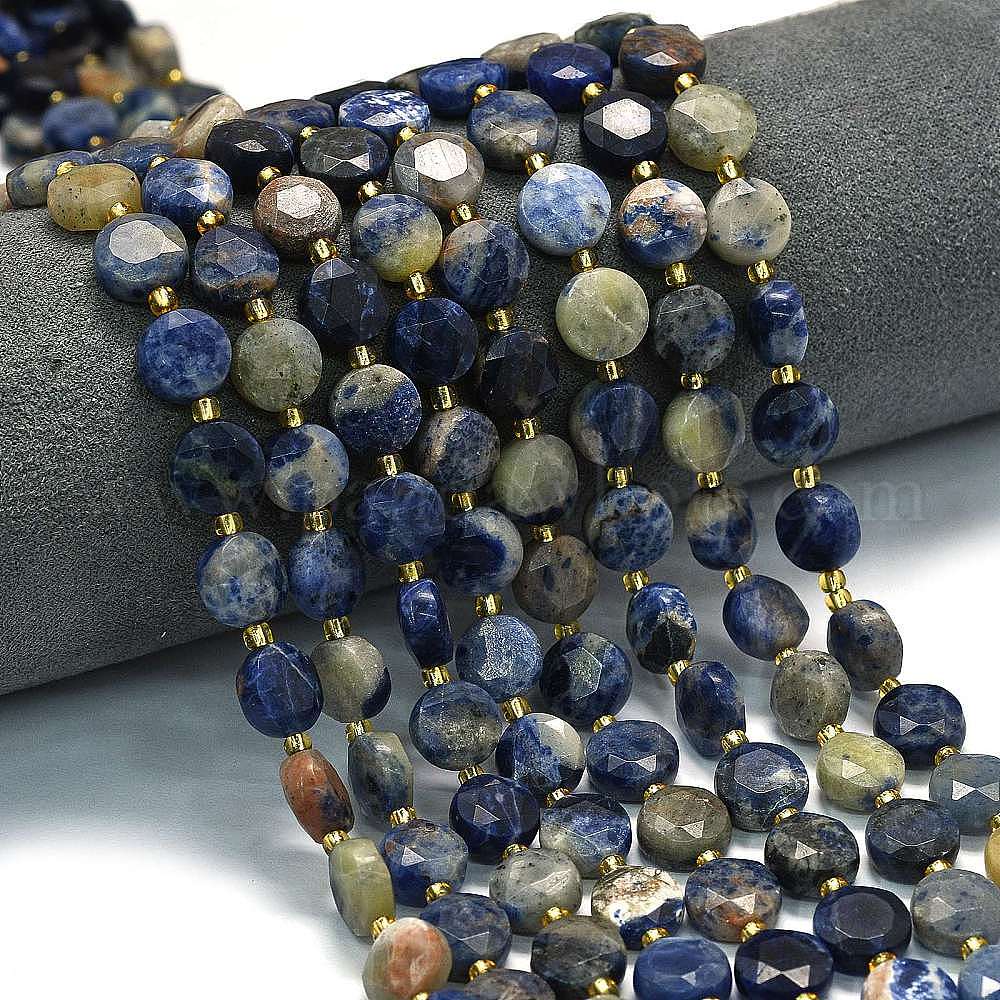 Нити бусин из натурального оранжевого содалита, граненый шестиугольный разрез, плоско-круглые, с бисером
