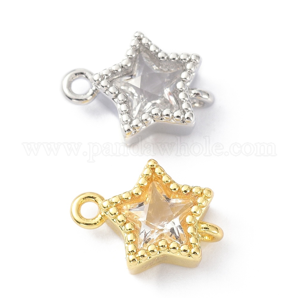 • Платина Экологически чистые латунные соединители с прозрачным кубическим цирконием, долговечный, звезда, Реальная платина, 11x8x3.8 мм, отверстие : 1.2 мм