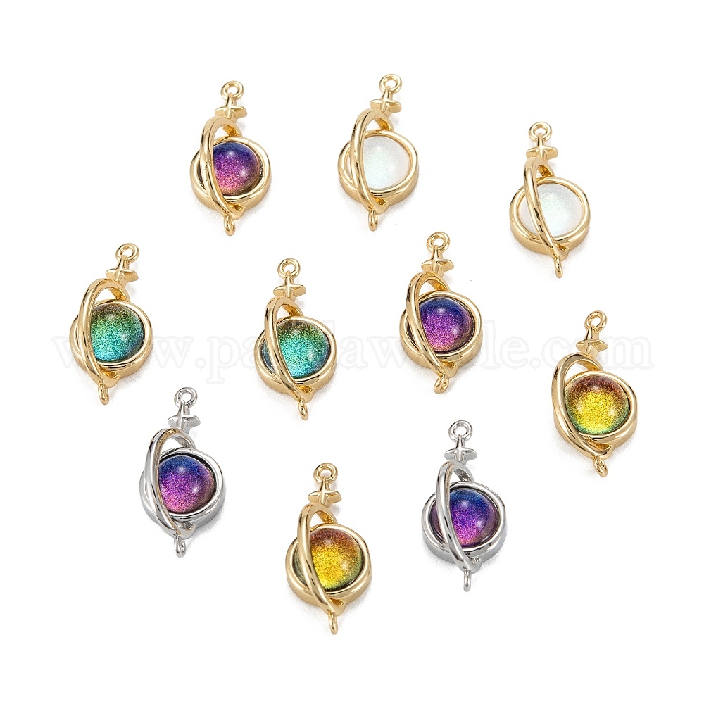 Соединители звеньев латуни стеклянные, реальный 18 k позолоченный, долговечный, без свинца, без никеля и без кадмия, круглая со звездой