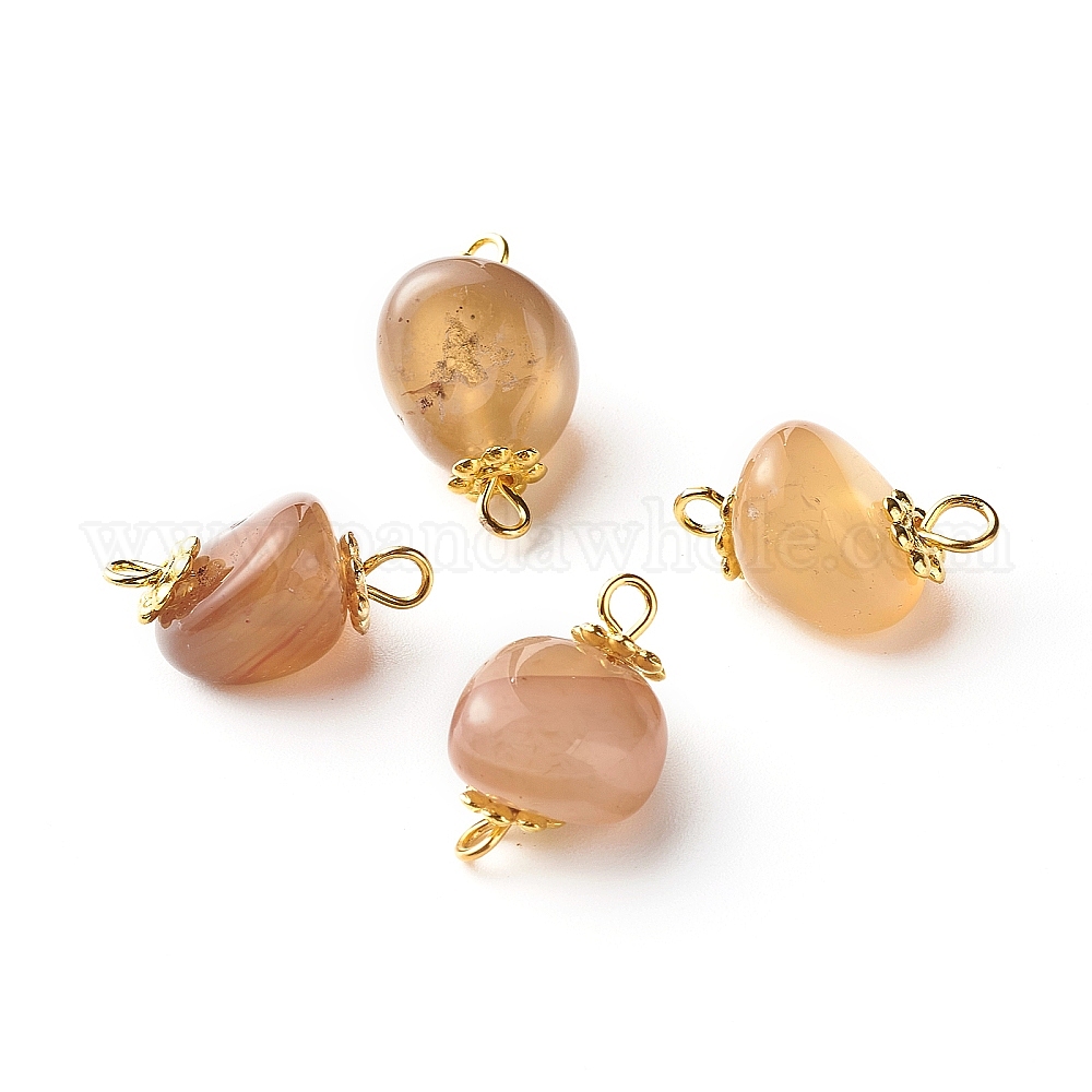 Бусины, окрашенные натуральным агатом, соединители звеньев, с цветочными бусинами из сплава и латунной булавкой для глаз, золотые, самородки