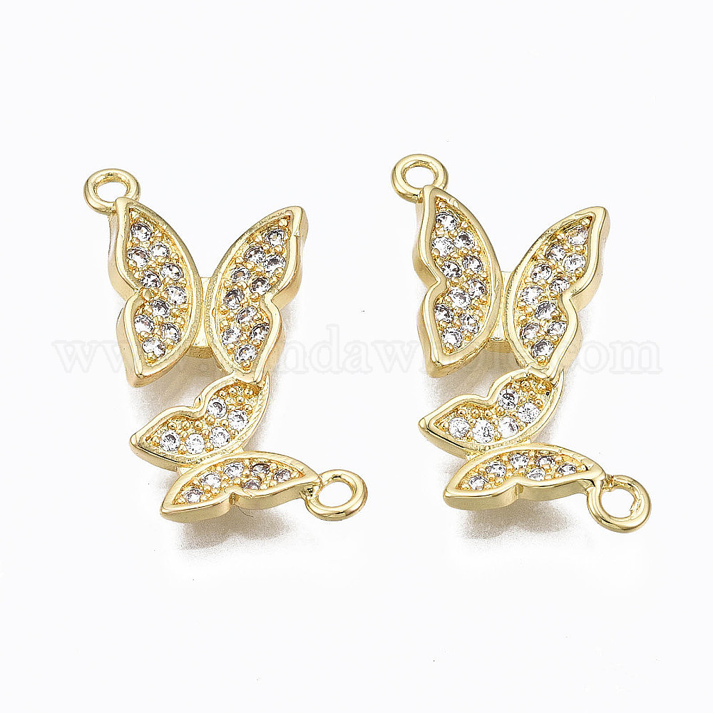 Соединители из латуни с микропаве и кубическим цирконием, без никеля , реальный 16 k позолоченный, бабочка