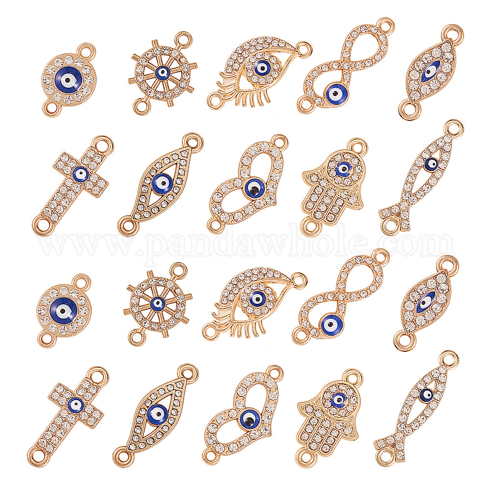 50 шт 10 стиль звеньев из сплава, с стразами и эмалью, крест и бесконечность и сердце и конский глаз и плоский круглый и шлем и рыба Иисус и сглаз