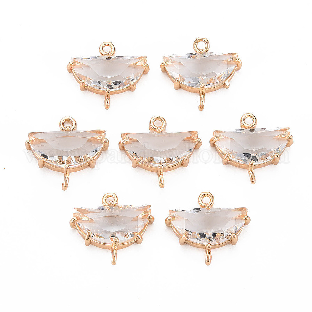 Подвески из прозрачного граненого стекла, с легкими золотыми тонами латуни, без кадмия и без свинца, половину плоской круглой