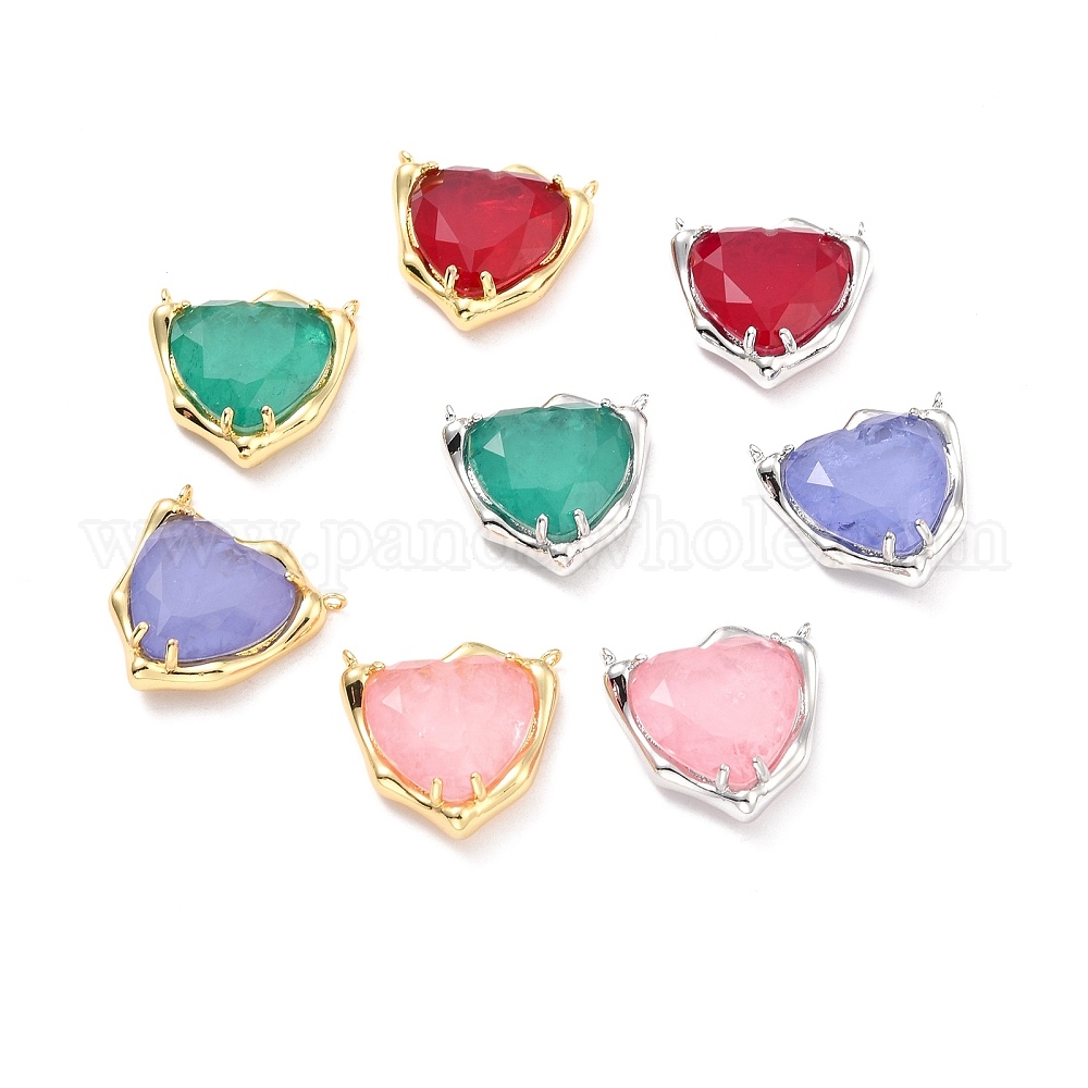 • (52) Непрозрачная лаванда Экологически чистая латунь со стеклянными подвесками, долговечный, без свинца, без кадмии и без никеля, реальный 18 k позолоченный, разноцветные, 24x23.5x7 мм, отверстие : 1.5 мм