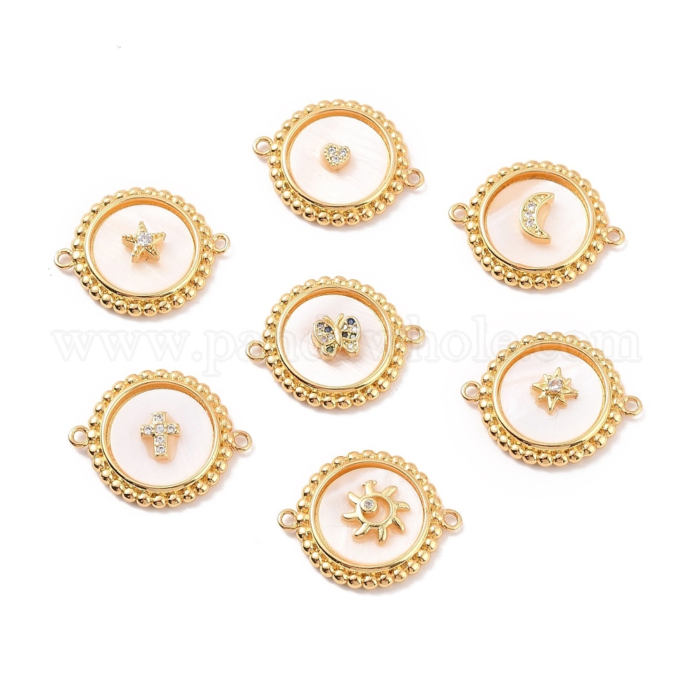 Латунь с покрытием из латуни, микро-паве, прозрачные подвески из кубического циркония, с оболочкой, долговечный, плоский круг с разноцветными узорами