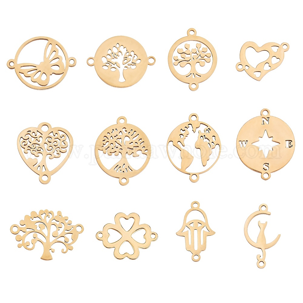 12шт 12 стили 201 и 304 подвески из нержавеющей стали, сердце и плоский круг с деревом и компасом
