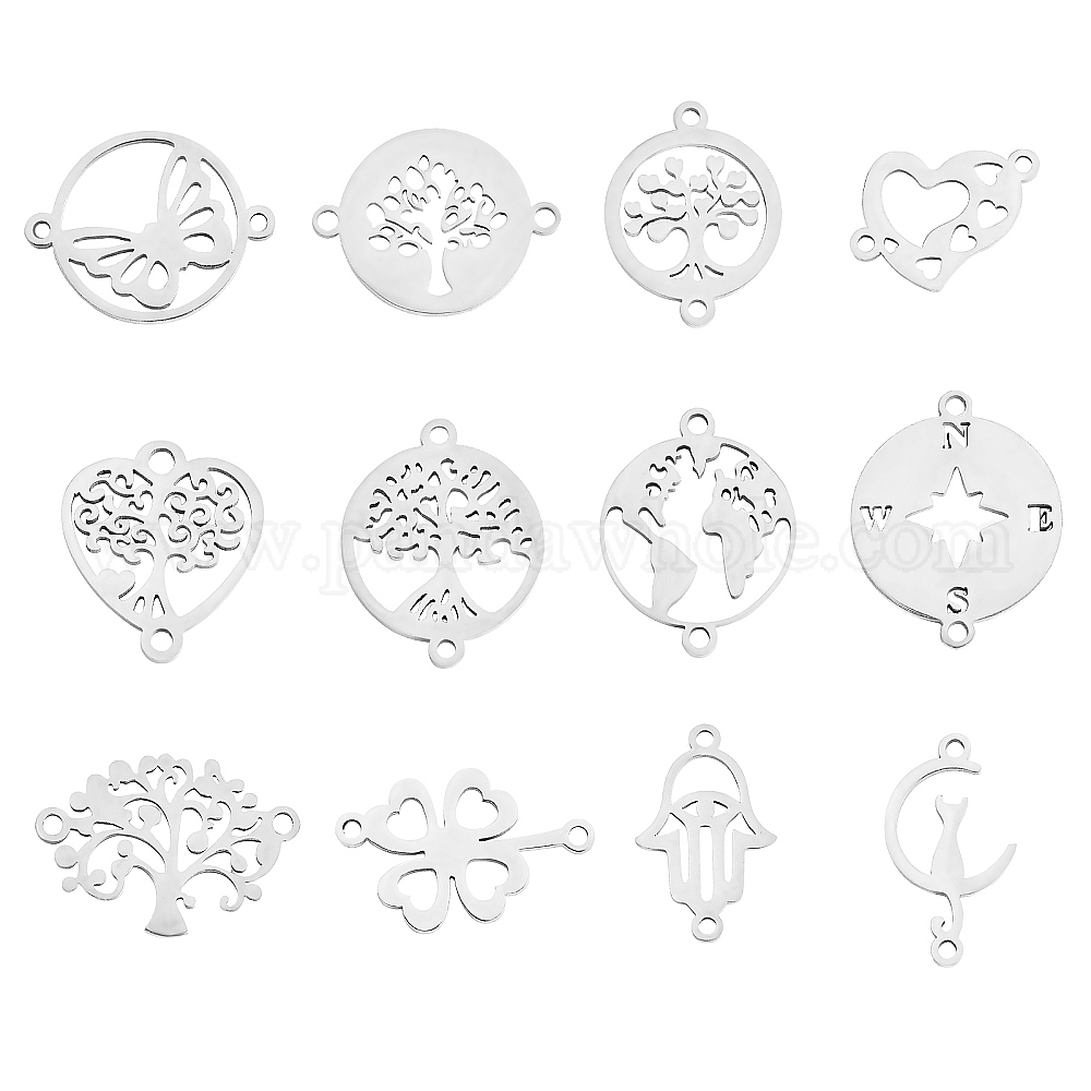 12шт 12 стили 201 подвески из нержавеющей стали, сердце и плоский круг с деревом и компасом, разнообразные