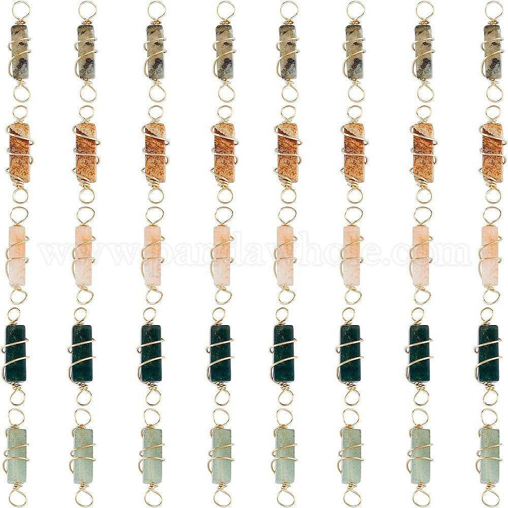 • Золотой 40 шт. 5 стили натуральный драгоценный камень медная проволока обернутая соединительные подвески, натуральный лабрадорит, индийский агат, зеленый авантюрин, картинная яшма и карнлиан, кубоид, золотые, 22~23.5x6~7x5.5~6 мм, отверстие : 2.5~3.2 мм, 8 ps / style