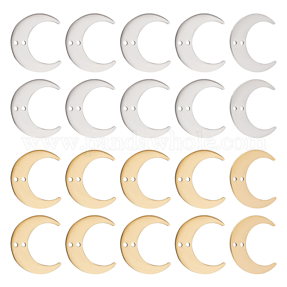 • Золотой & Цвет Нержавеющей Стали 20 шт. 2 цвета 201 нержавеющая сталь 2 подвески с петлями, лазерная резка, полумесяц, золотые и нержавеющая сталь цвет, 17x20x1 мм, отверстие : 1.4 мм, 10 шт / цвет