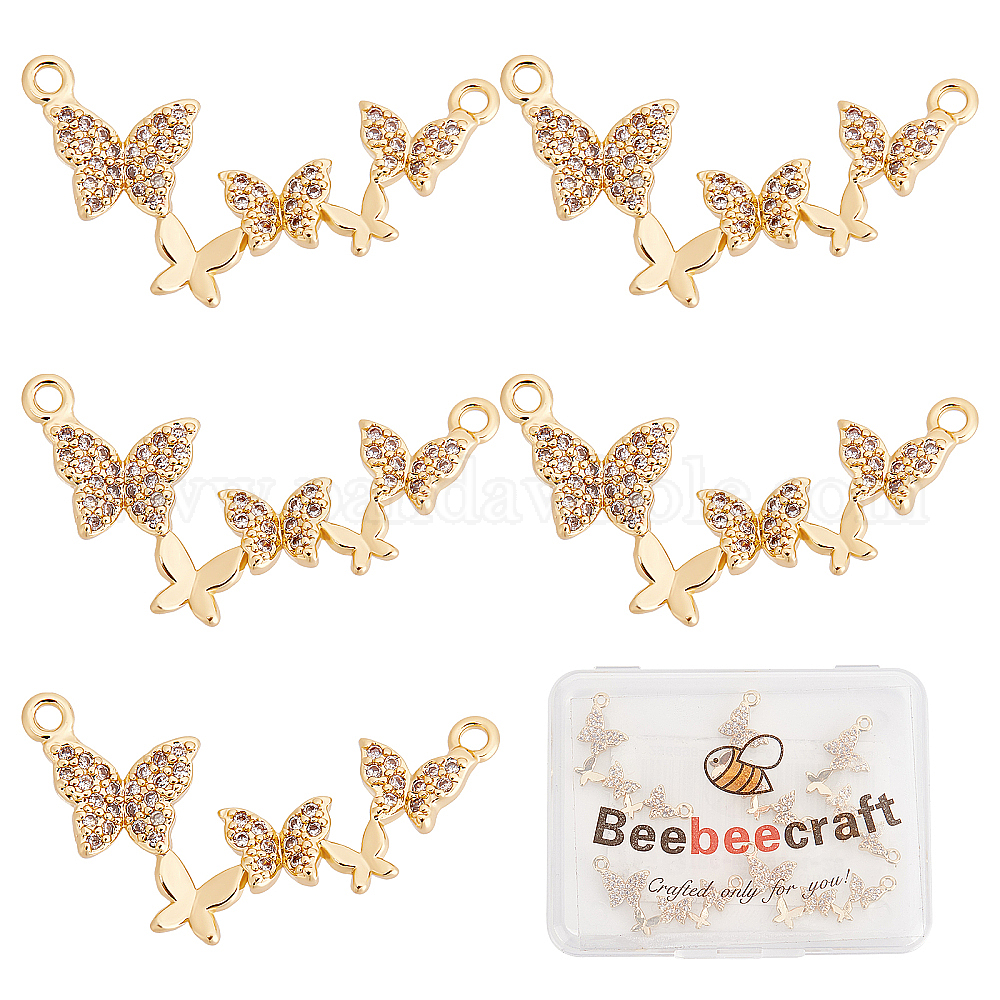 Шармы-соединители из латуни с микропаве из прозрачного кубического циркония, бабочка