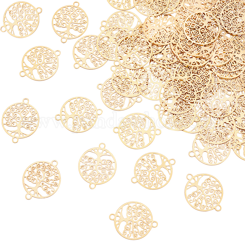 60покрытие стойки шт. 201 подвески для соединителей из нержавеющей стали, гравированные металлические украшения, плоские круглые с дерева жизни