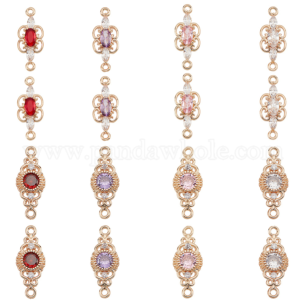 16шт 8 стиль латунные подвески-соединители с кубическим цирконием, со стеклом, долговечный, золотой свет, разнообразные
