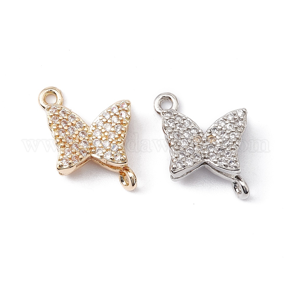 Шармы-соединители из латуни с микропаве из прозрачного кубического циркония, долговечный, без кадмия и без свинца, бабочка