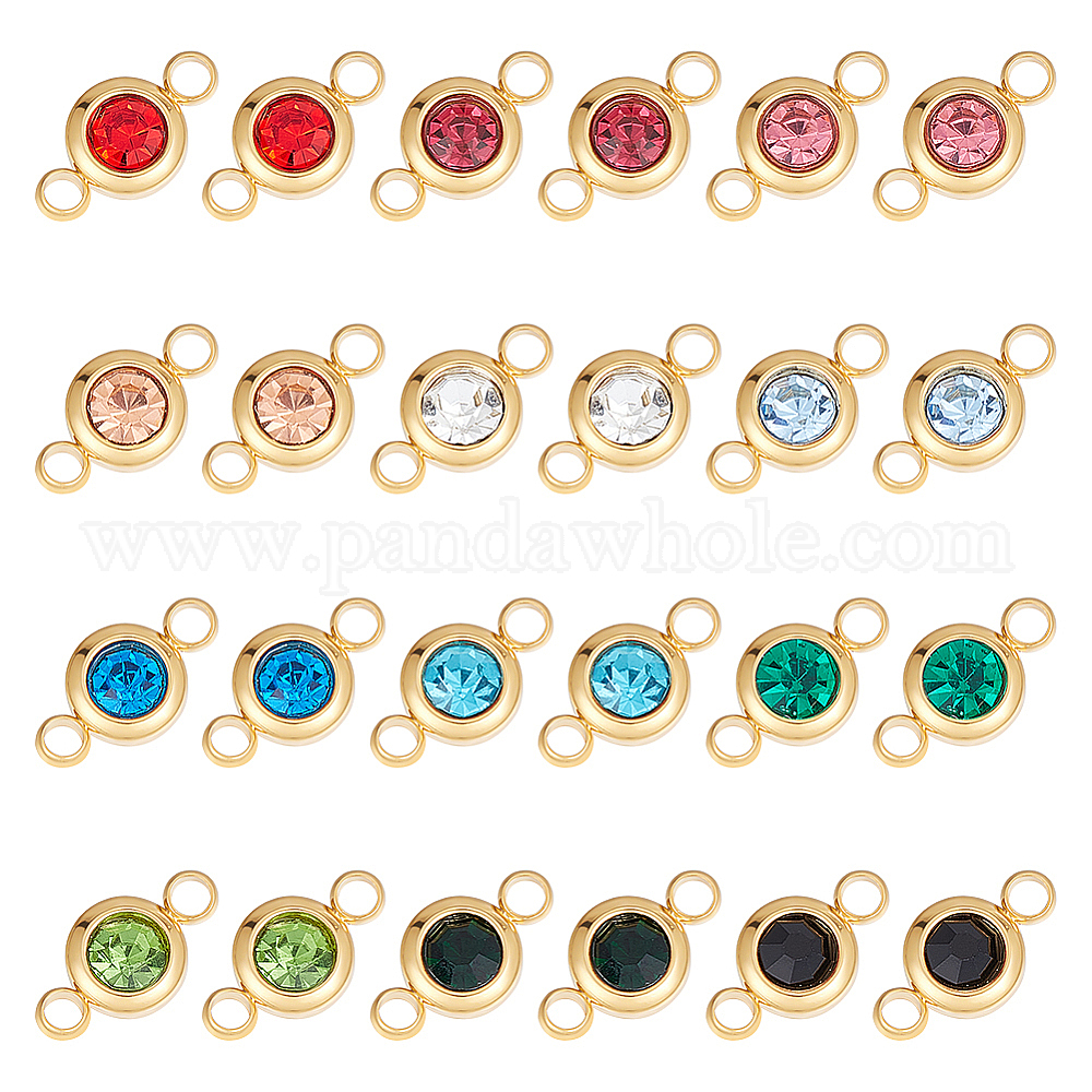 24шт 12 цвета 304 подвески со стразами из нержавеющей стали, золотые, плоско-круглые