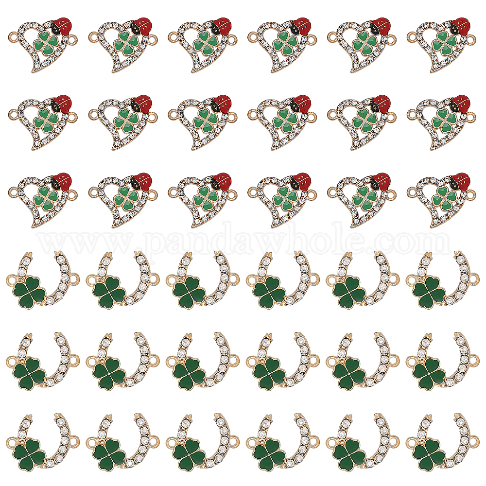 36 шт. 2 стили сплава кристаллы стразы разъем подвески, с эмалью, золотой свет, форма c с клевером и сердце с божьей коровкой
