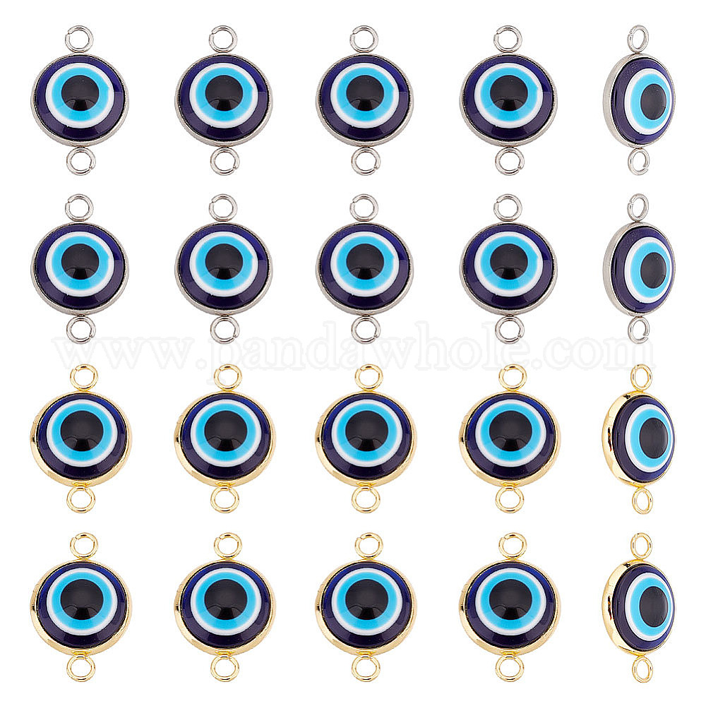 20 шт 2 стили сглаз смоляные соединители подвески, с 304 фурнитурой из нержавеющей стали, плоско-круглые