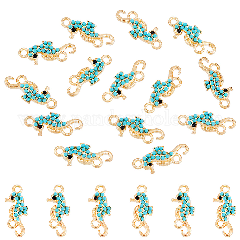 • Light Gold 50шт. сплав струйный стразы соединительные подвески, cmолой, ссылки на морских коньков, золотой свет, 24.5x10x3.5 мм, отверстие : 2 мм