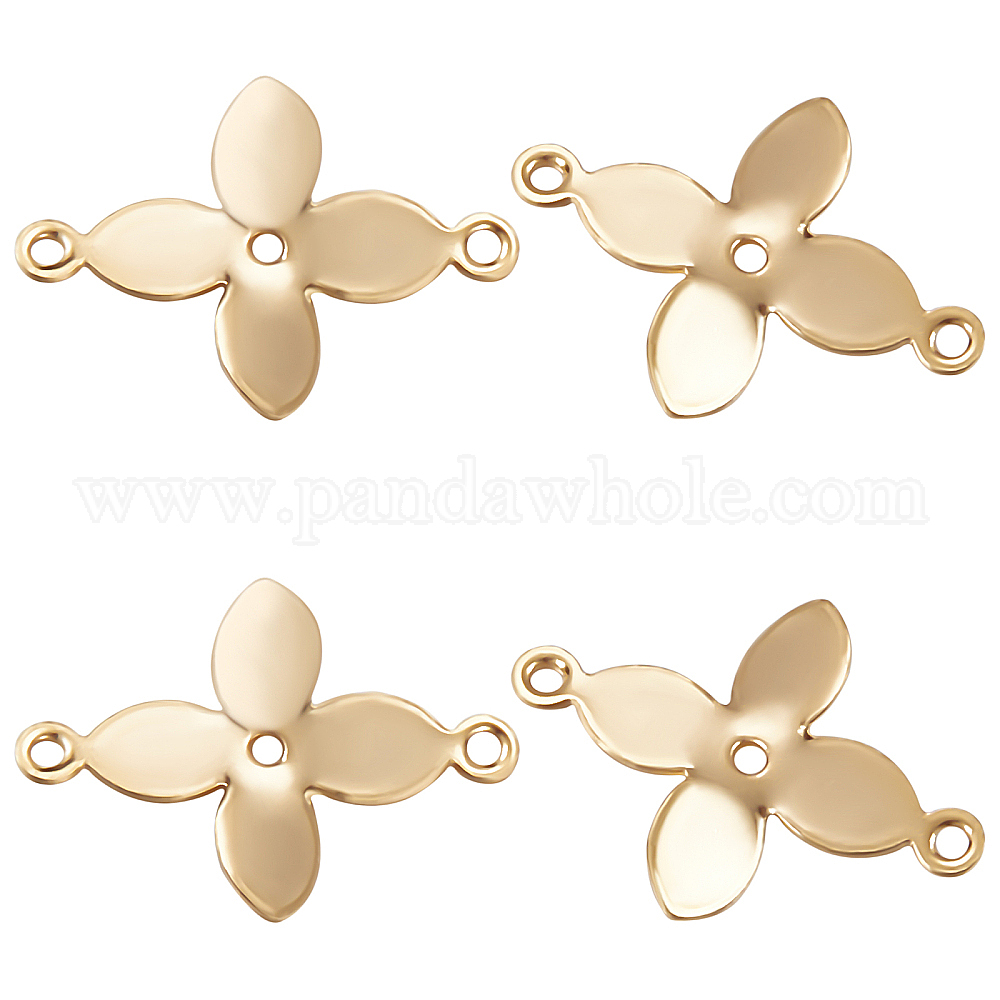 • Настоящее золото 24K 100 шт. латунные подвески для разъемов, цветок ссылки, долговечный, реальный 24 k позолоченный, 11x15x1 мм, отверстие : 0.9 мм, 100 шт / коробка