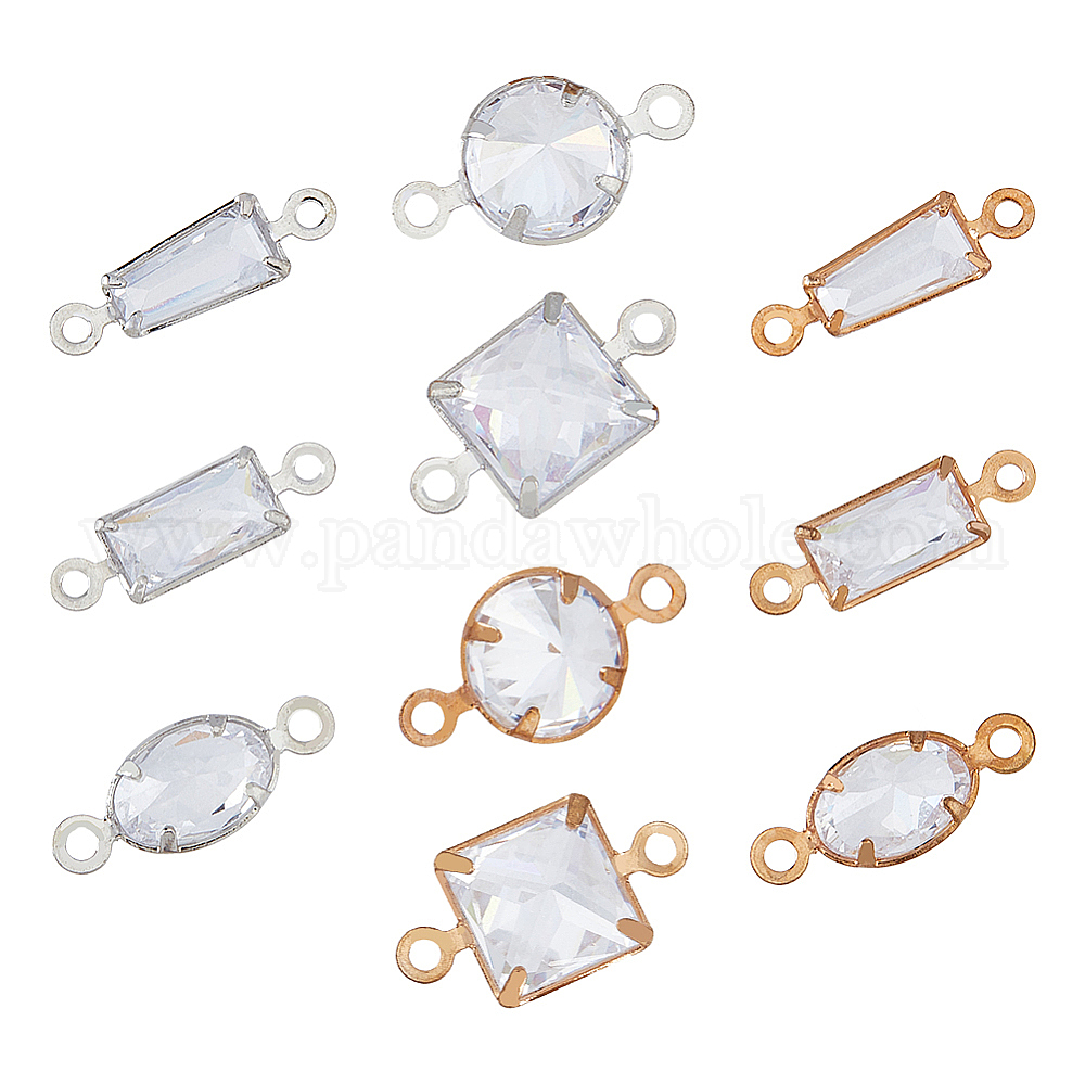 40 шт. 10 стили латуни проложить прозрачный фианит соединитель подвески, геометрическая связь, квадрат и овал и прямоугольник, разнообразные (02FSFX)