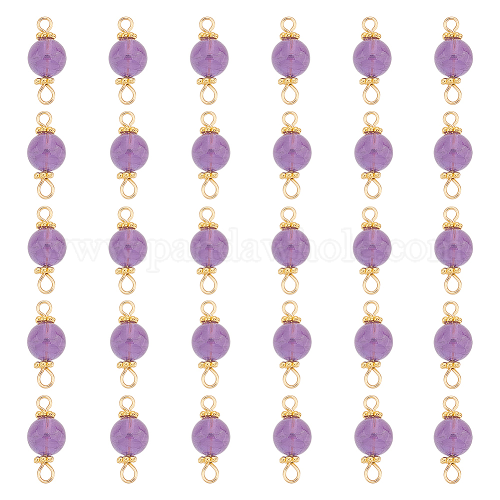 • Золотой 30шт. подвески-коннекторы из натурального аметиста, с 304 петлями из нержавеющей стали, круглые ссылки, золотые, 18x8.5 мм, отверстия : 1.5 mm и 2.6 мм