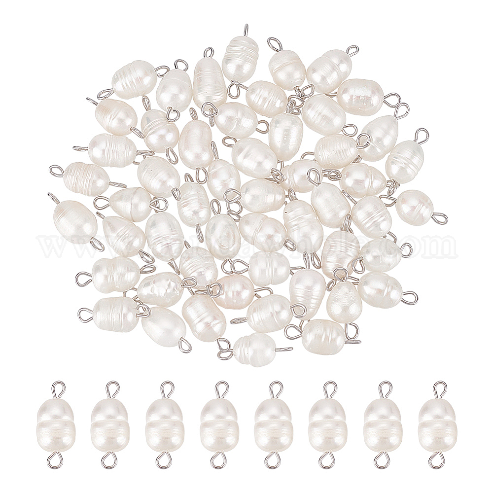 50шт. натуральный культивированный пресноводный жемчуг бусины соединительные подвески, рисовые ссылки, с платиновым оттенком 304 фурнитура из нержавеющей стали (02GCB6)