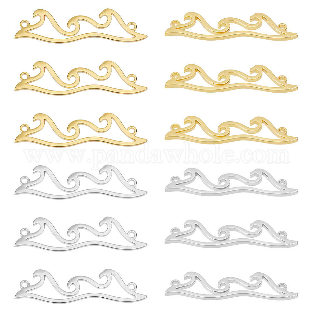 20шт 2 цвета 304 подвески из нержавеющей стали, звенья в форме волны