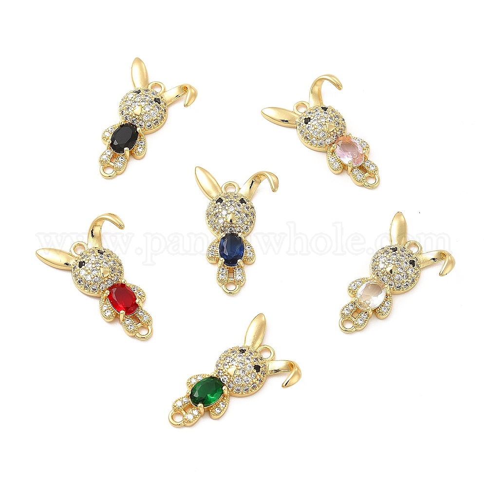 Латунь с покрытием из латуни, микро-паве, прозрачные подвески из кубического циркония, кролик ссылки, С граненым стеклом, без кадмия и без свинца, реальный 18 k позолоченный
