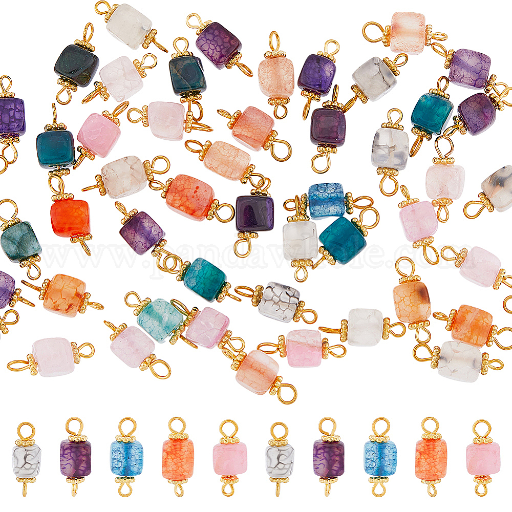 • (52) Непрозрачная лаванда 50шт 5 цвета натуральный агат соединительные подвески, с золотой гальванической железной фурнитурой, куб ссылки, разноцветные, 17~18x7~7.5x6.5~7 мм, отверстие : 2~3.5 мм, 10 шт / цвет