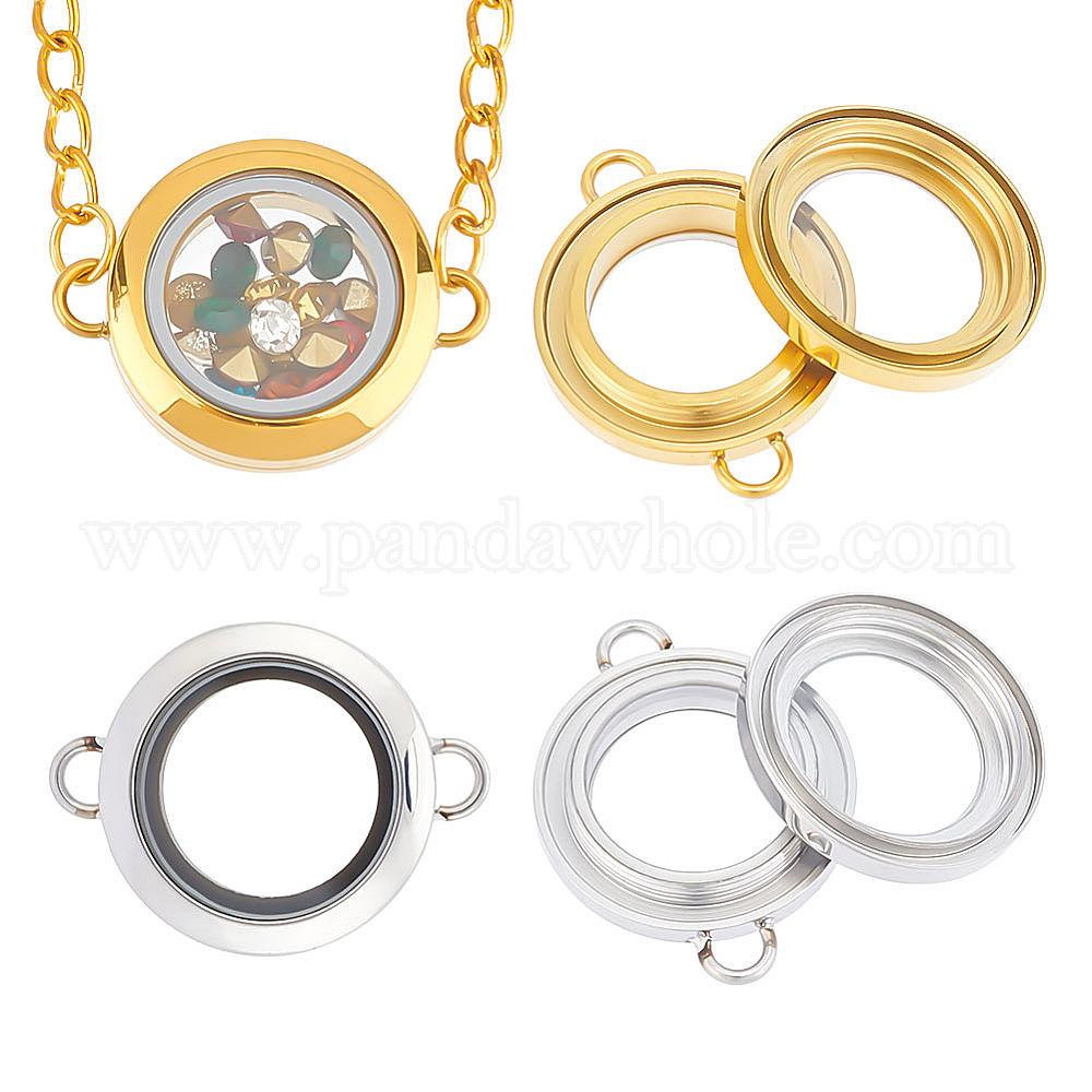• Золотой & Цвет Нержавеющей Стали 2 шт. 2 цвета плоские круглые плавающие медальоны из нержавеющей стали подвески-шармы, со стеклом, ссылки на медальон памяти, золотые и нержавеющая сталь цвет, 3.25x2.45x0.6 см, отверстие : 4x3 мм, внутренний диаметр: 17.5 мм, 1 шт / цвет