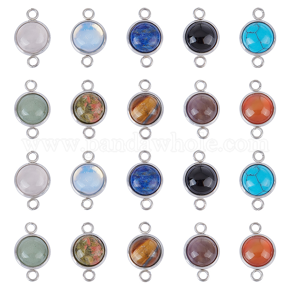 20шт. 10 стили смешанные драгоценные камни соединительные подвески наборы, полукруглые звенья, с цветным тоном нержавеющей стали 304 фурнитура из нержавеющей стали