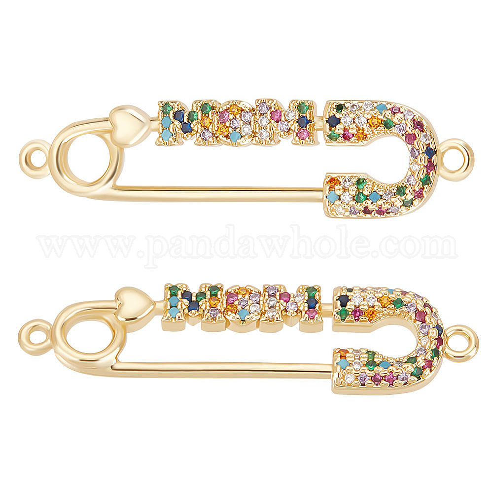 • Золотой 5шт. тематика дня матери латунные микро-паве разноцветные кубические циркониевые подвески-соединители, Ссылки в форме английской булавки со словом мама, золотые, 10x38.5x2.5 мм, отверстие : 1.5 мм
