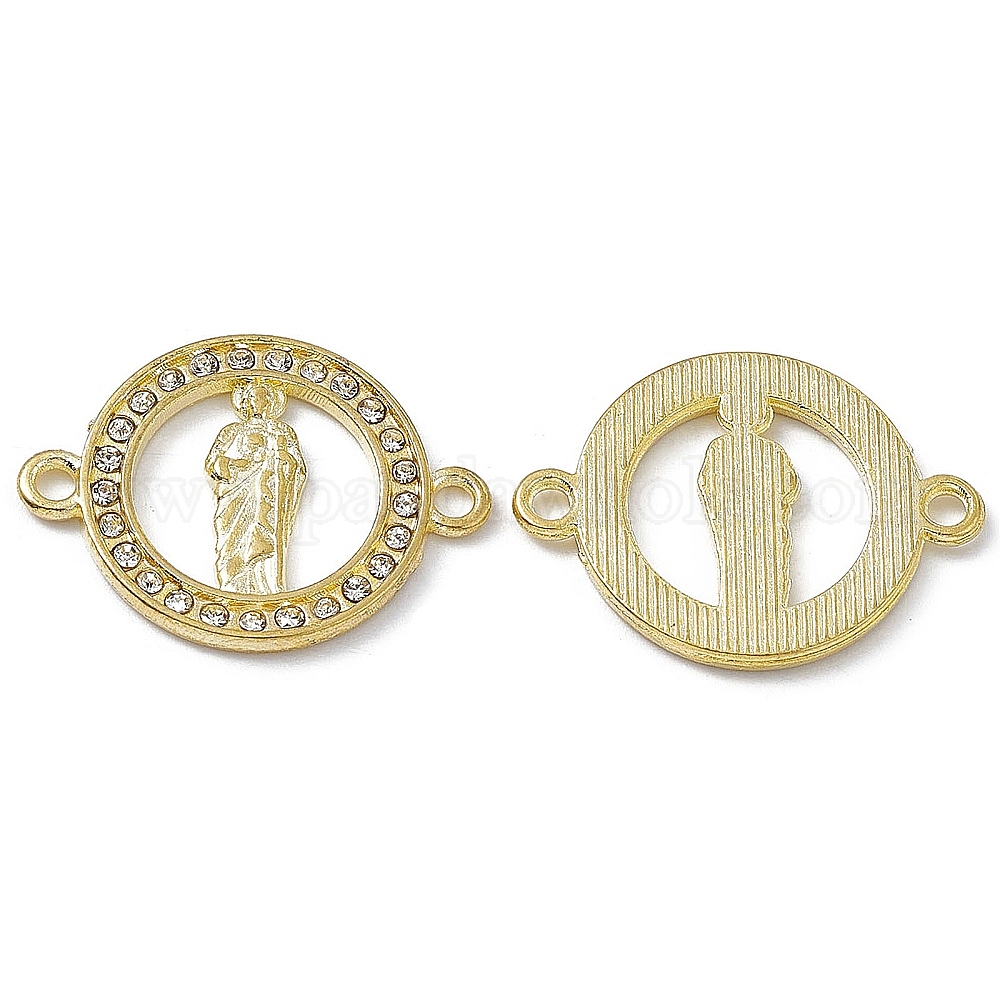 • Золотой Прелести разъема сплава религии, с кристальными стразами, плоские круглые звенья с первичным рисунком, золотые, 18x24x1.7 мм, отверстие : 1.8 мм