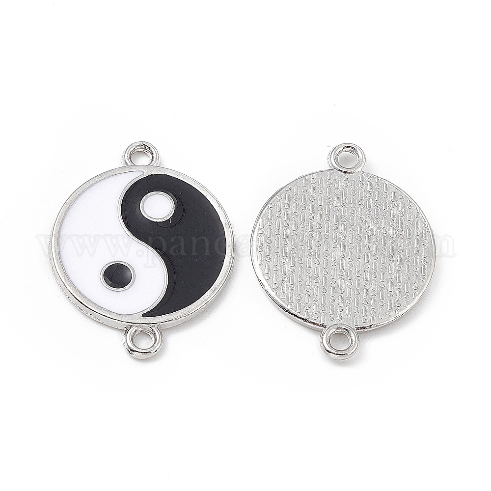 Прелести соединителя сплава, с эмалью, плоские круглые звенья с узором инь-янь, черные и белые