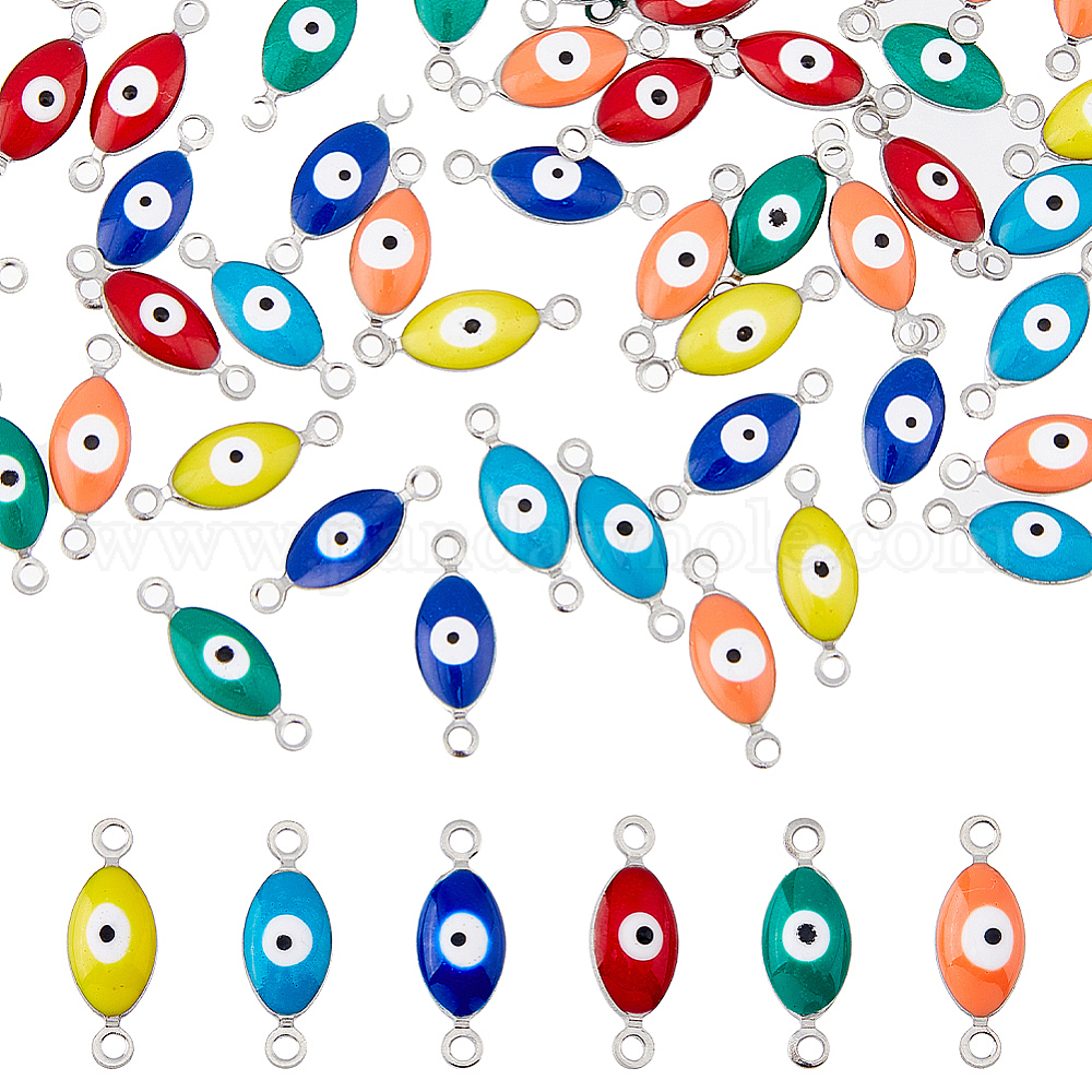 60 шт. 6 цвета 304 эмалированные соединители из нержавеющей стали, цвет нержавеющей стали, ссылки на конский глаз