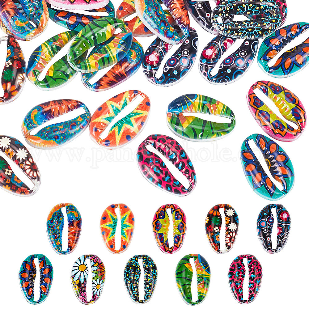 50 шт. 10 стили печатных подвесок из сплава, звенья в форме раковины каури, смешанные узоры