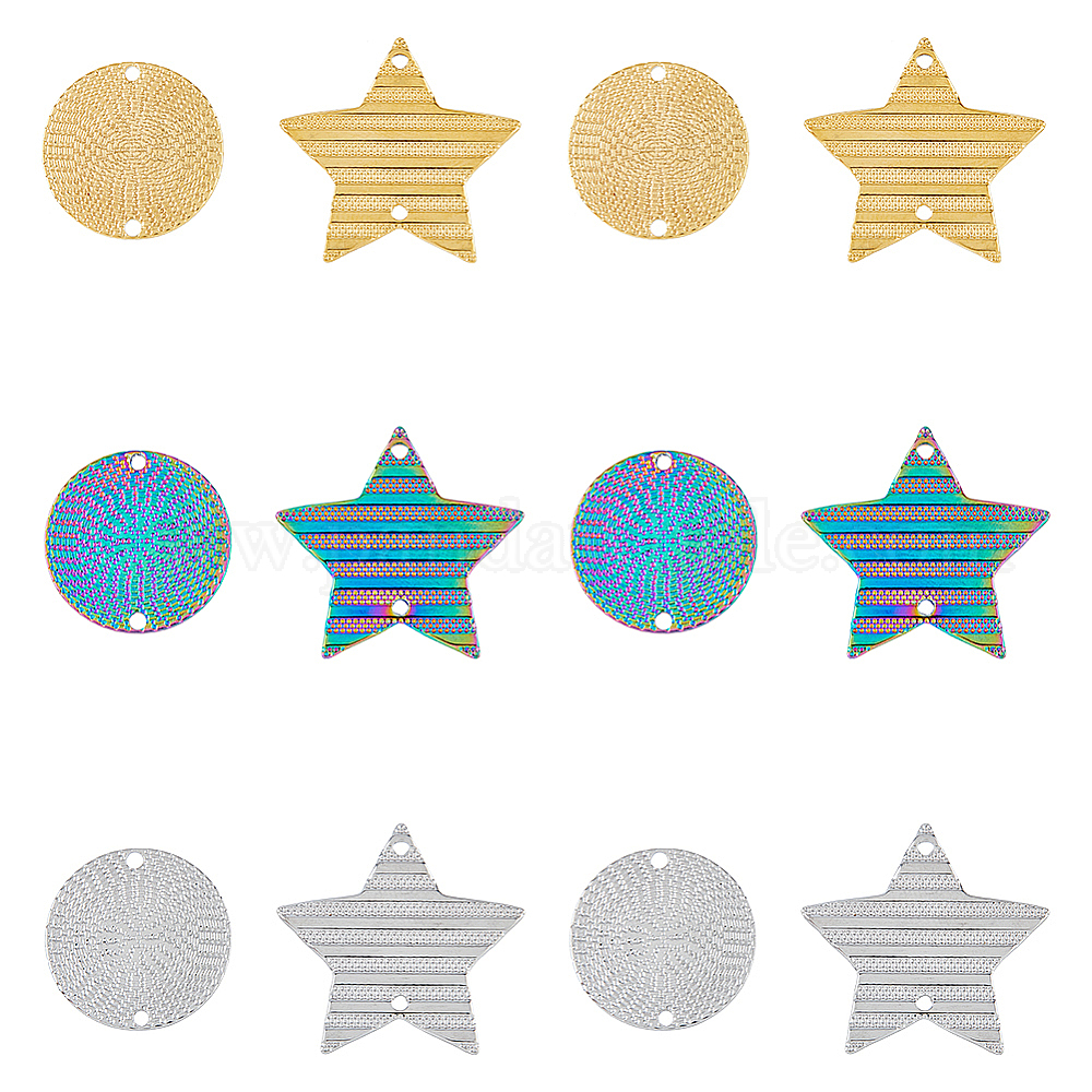 24шт 6 стили 304 подвески из нержавеющей стали, плоские круглые и полосатые звезды