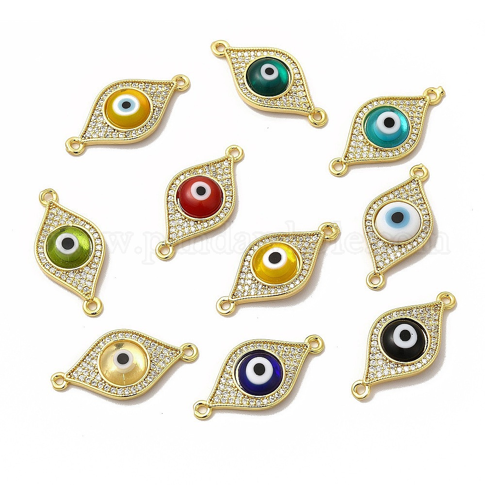 Реечное покрытие из настоящей позолоченной латуни с микропаве из прозрачного кубического циркония, соединительные подвески, Сглаз связывает с лэмпворком ручной работы, без кадмия и без свинца, долгоиграющий