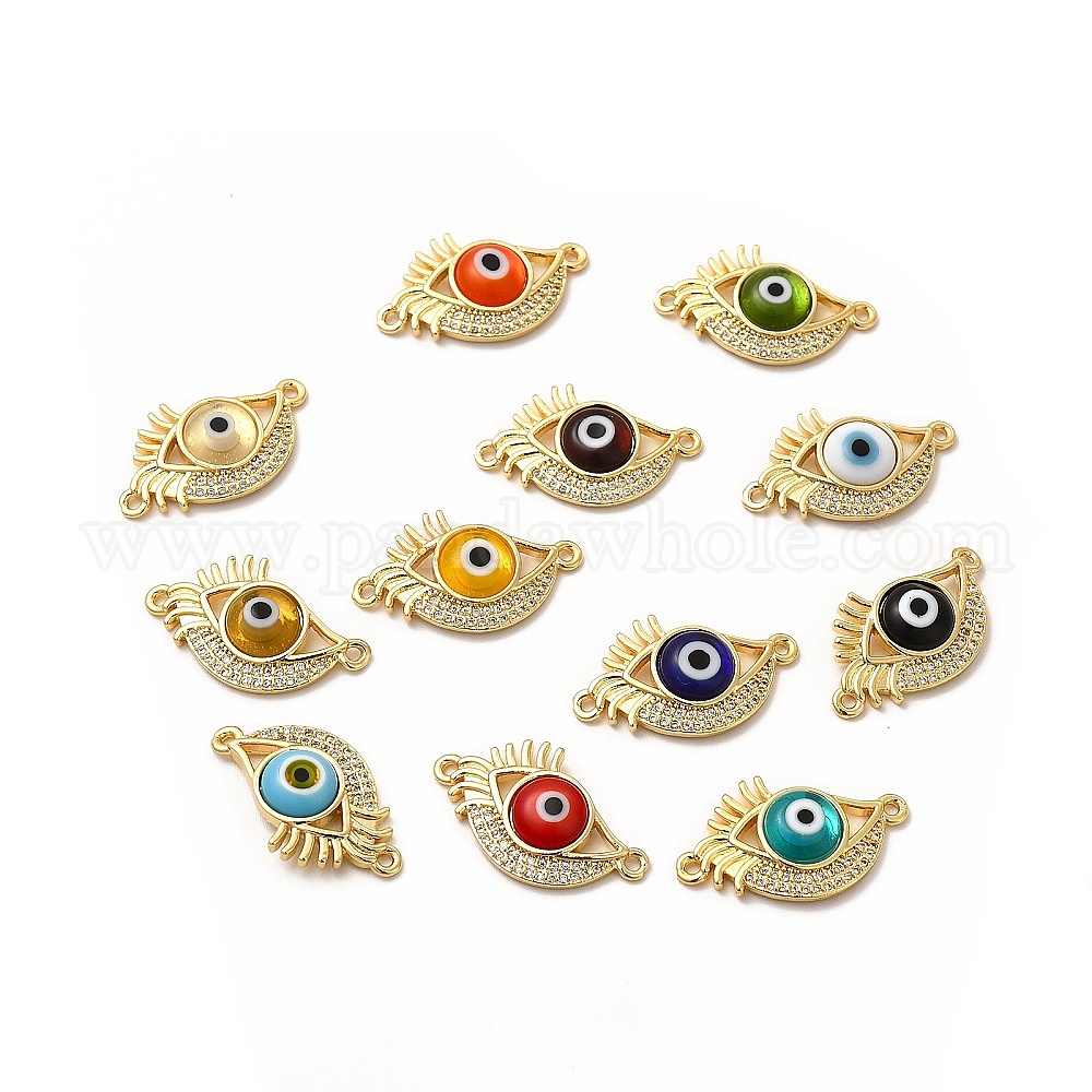 Реечное покрытие из настоящей позолоченной латуни с микропаве из прозрачного кубического циркония, соединительные подвески, глазки с лэмпворком ручной работы, без кадмия и без свинца, долгоиграющий