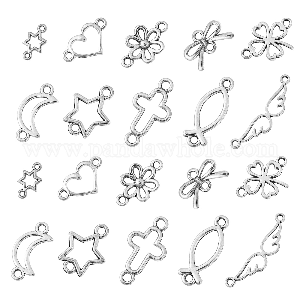 100шт 10 стили подвески из сплава в тибетском стиле, полые звенья, ангел и крест и сердце и бантик, разнообразные