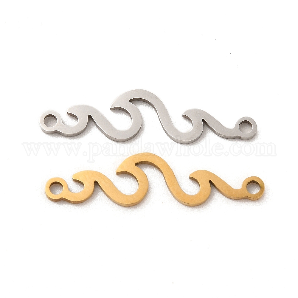 • Золотой 201 подвески из нержавеющей стали, волновые ссылки, золотые, 6x24x1 мм, отверстие : 1.4 мм