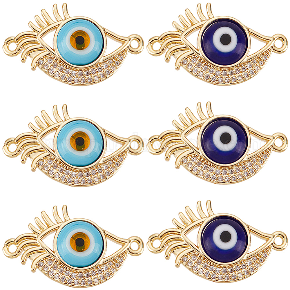 8 шт. 2 цвета стойка покрытие настоящее 18 позолоченная латунь микро паве прозрачный кубический цирконий соединительные подвески, глазные связи с лэмпворком от сглаза ручной работы, без кадмия и без свинца