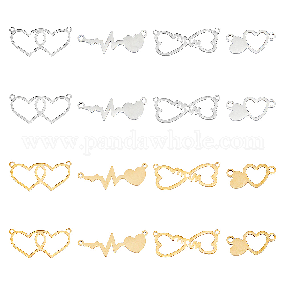 16шт 8 стили 201 подвески из нержавеющей стали, сердечные ссылки