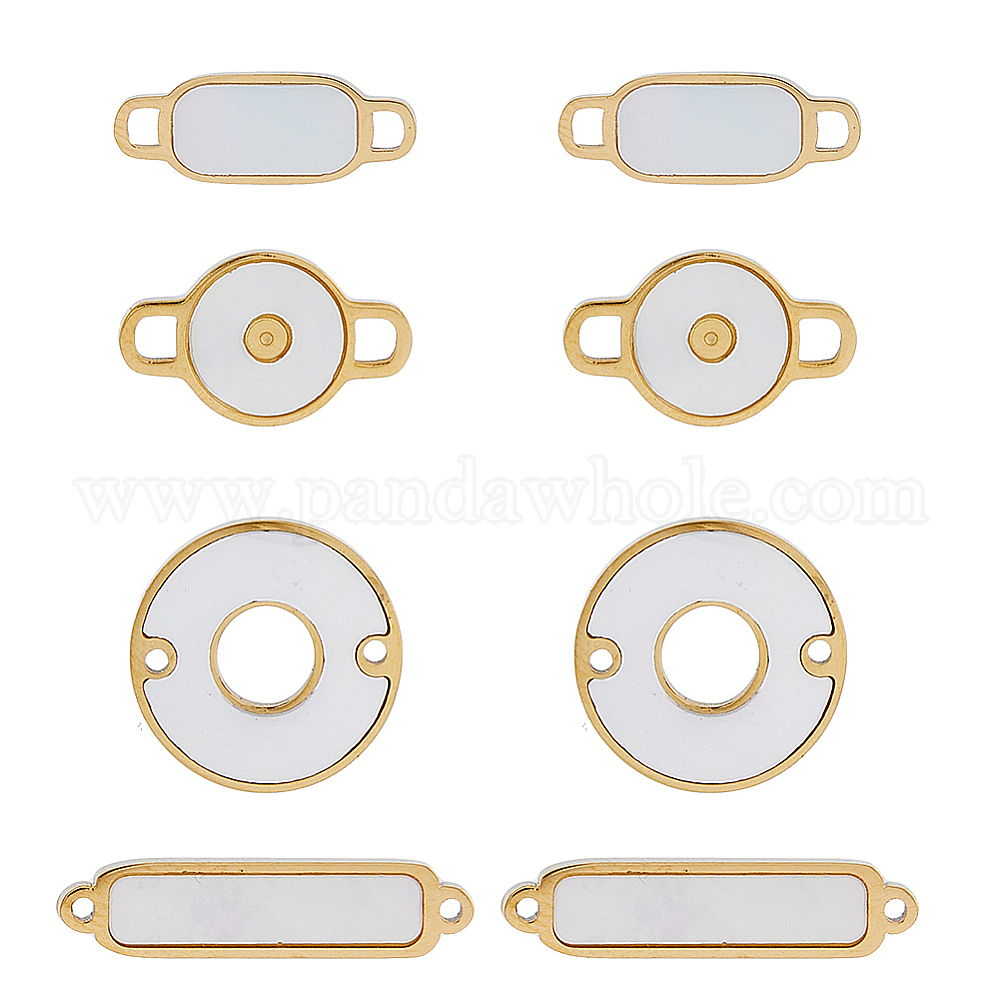 8 шт. 4 стили 304 подвески из нержавеющей стали с оболочкой, прямоугольник и плоский круглый, цвет морской раковины