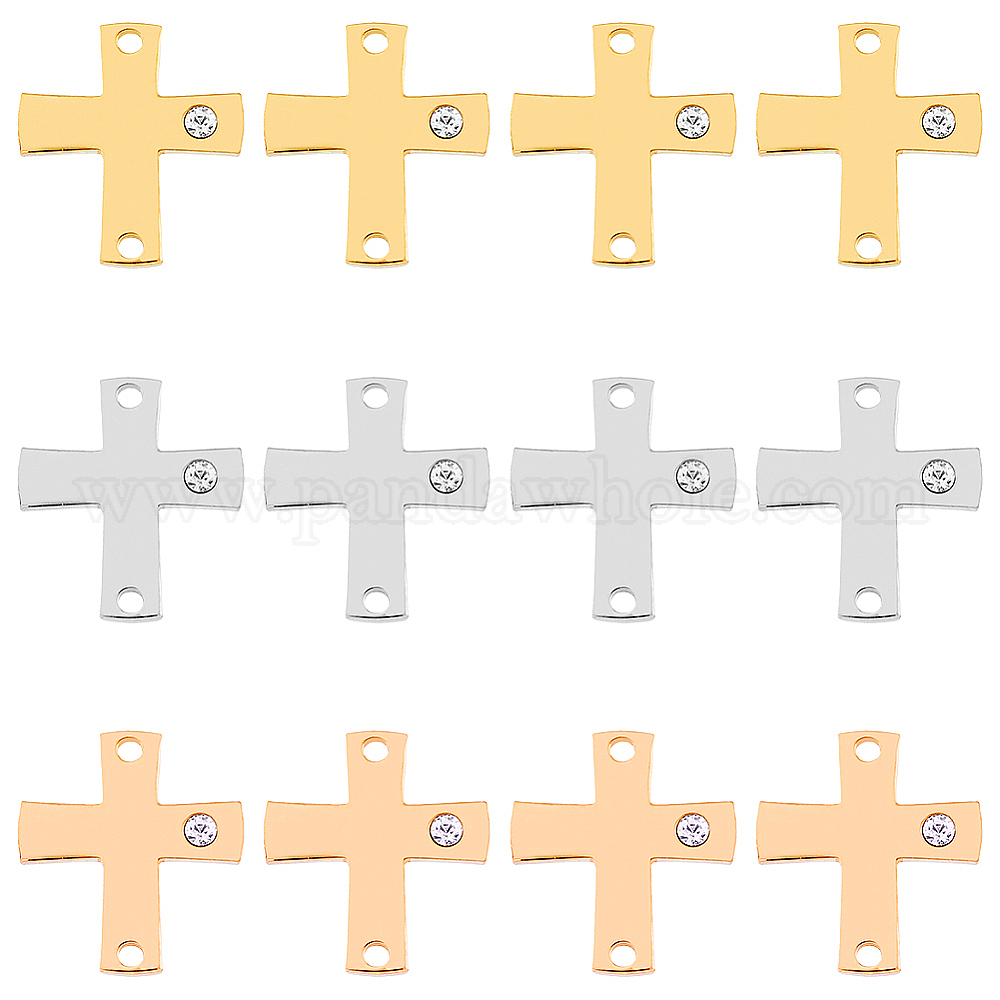12 шт. 3 цвета 316 хирургическая нержавеющая сталь паве прозрачный кубический цирконий соединительные подвески, религиозные перекрестные ссылки