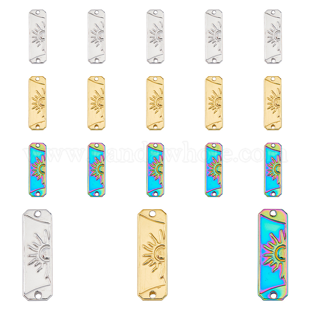 18шт 3 цвета 304 подвески из нержавеющей стали, прямоугольные звенья с рисунком солнца