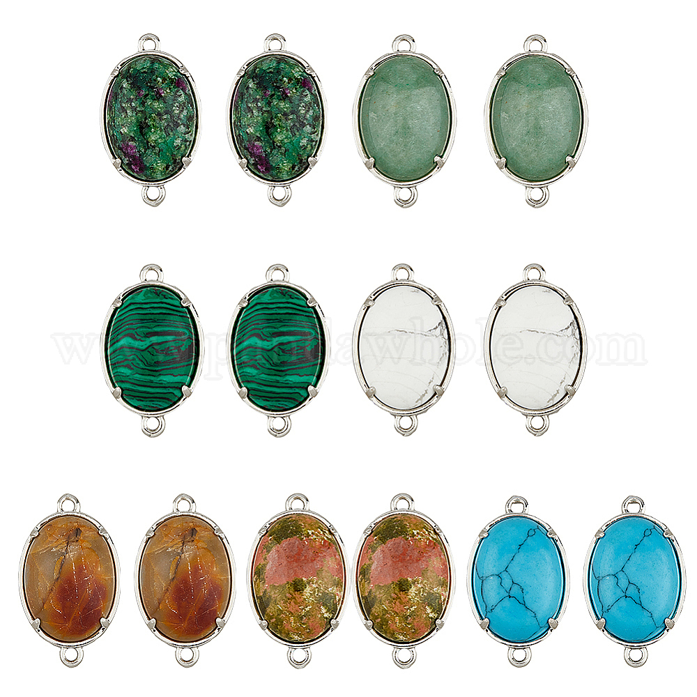 14шт 7 стили подвески из смешанных драгоценных камней, плоские овальные звенья, латунная фурнитура с платиновым покрытием