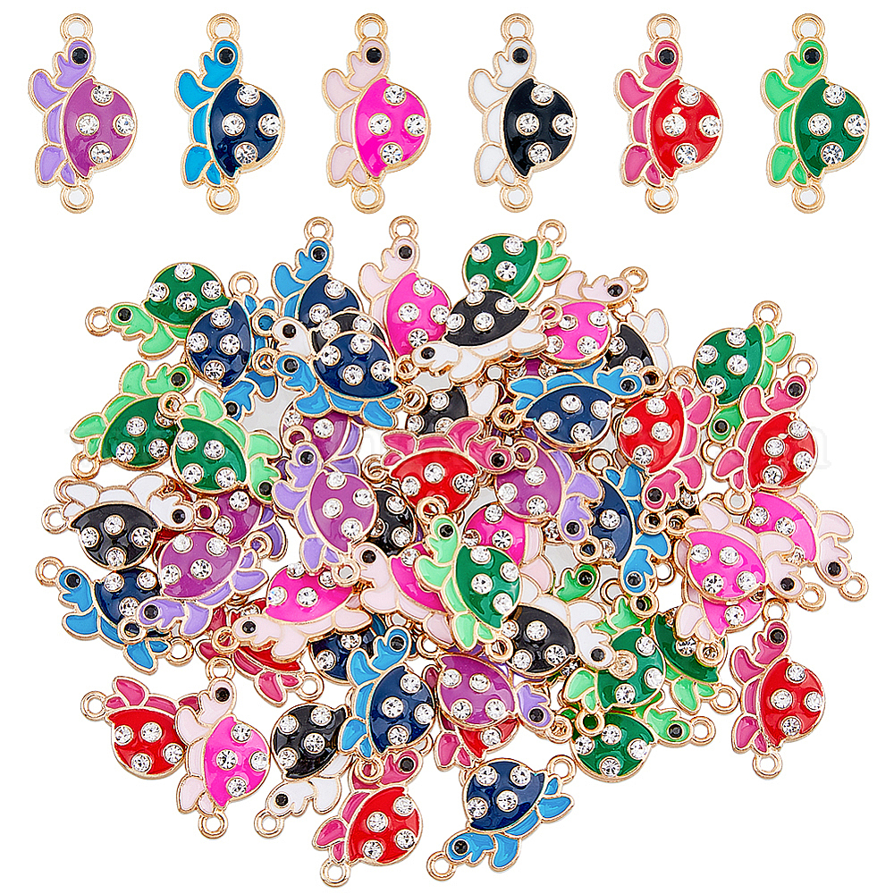 60шт 6 цветной эмалевый сплав подвески разъема, черепаховые звенья с хрустальными стразами, золотой свет, без кадмия, без никеля и без свинца